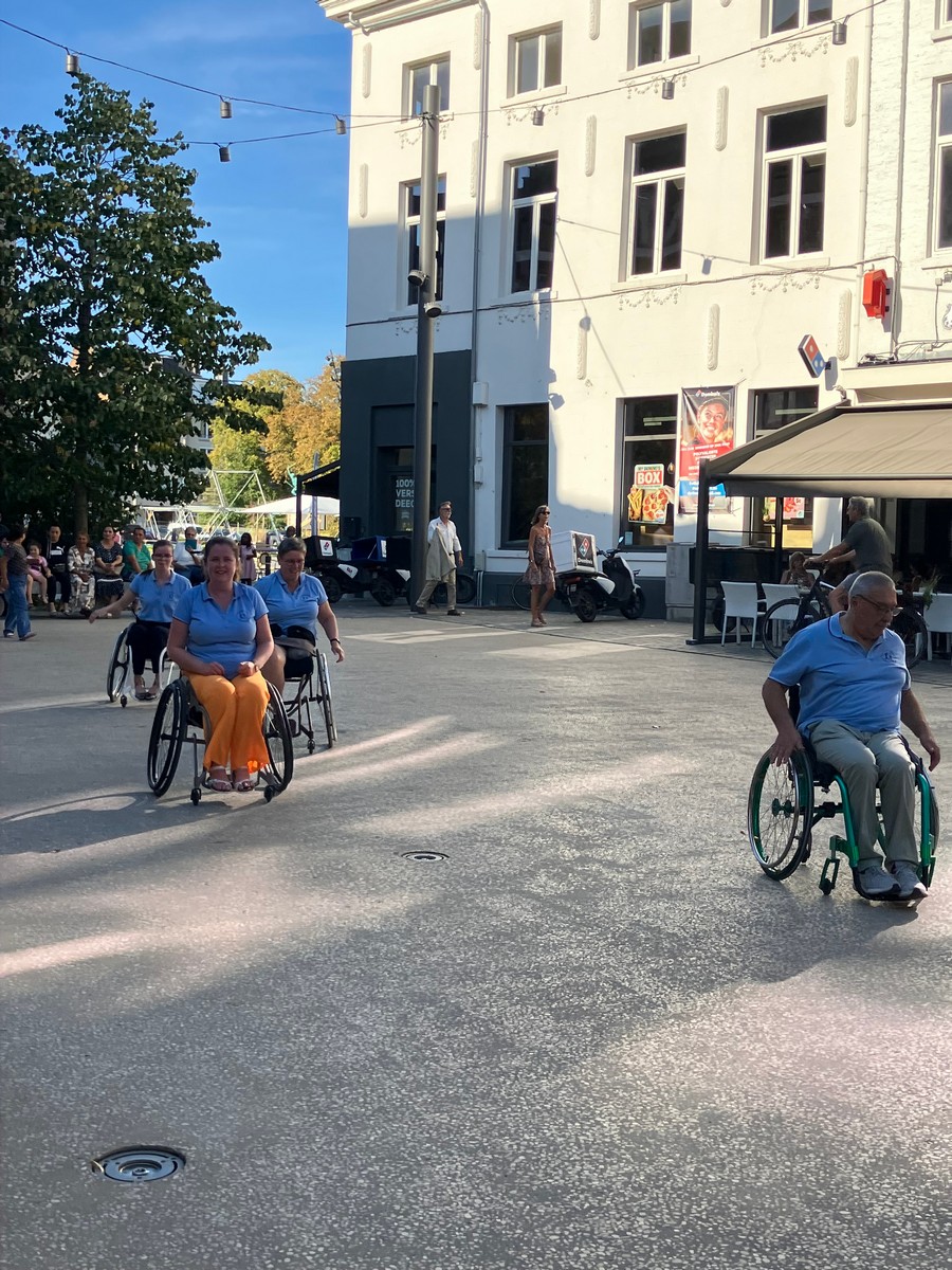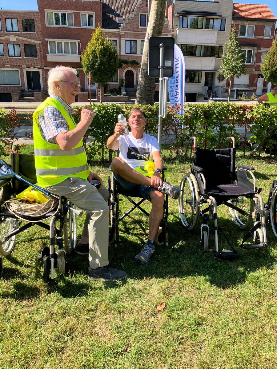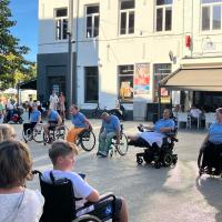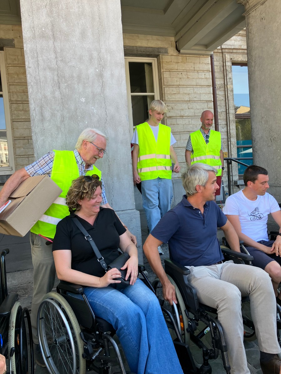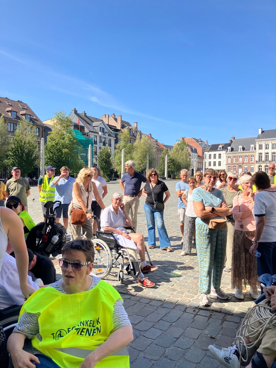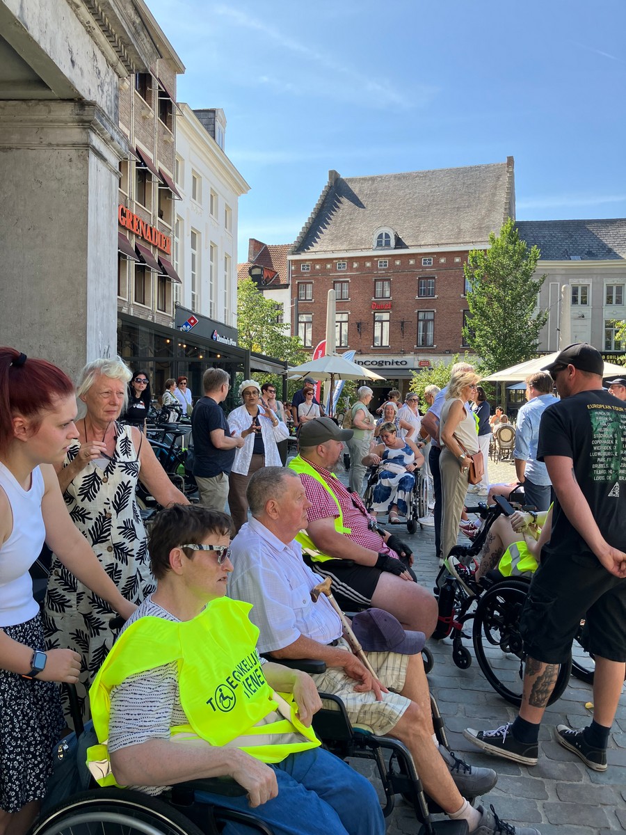 Een 80-tal sympathisanten, de Burgemeester Jonathan Holslag, onze Schepenen en Gemeenteraadsleden hebben ook deelgenomen aan onze activiteit. Ze hebben mogen ervaren hoe moeilijk het is om zich met een rolstoel door de stad te bewegen! Er is nog werk aan de winkel.