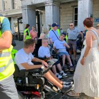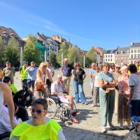 Een 80-tal sympathisanten, de Burgemeester Jonathan Holslag, onze Schepenen en Gemeenteraadsleden hebben ook deelgenomen aan onze activiteit. Ze hebben mogen ervaren hoe moeilijk het is om zich met een rolstoel door de stad te bewegen! Er is nog werk aan de winkel.